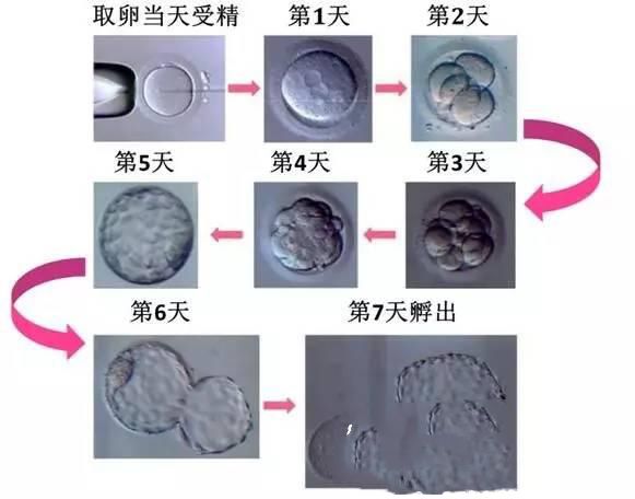 一般来说,试管婴儿胚胎的移植或是冷冻要么发生在取卵后第三天,要么发生在取卵后的第五天。卵子刚取出来,只是单细胞,受精12-24小时后在培养液里发育并分裂,到第三天一般成为4-8细胞的胚,而到第五天大约发展成上百个细胞,此时胚胎也被称被囊胚, 界于两者之间(一般是第四天),还有一个阶段叫桑葚胚,因桑葚胚比较难评级,一般不做评级。